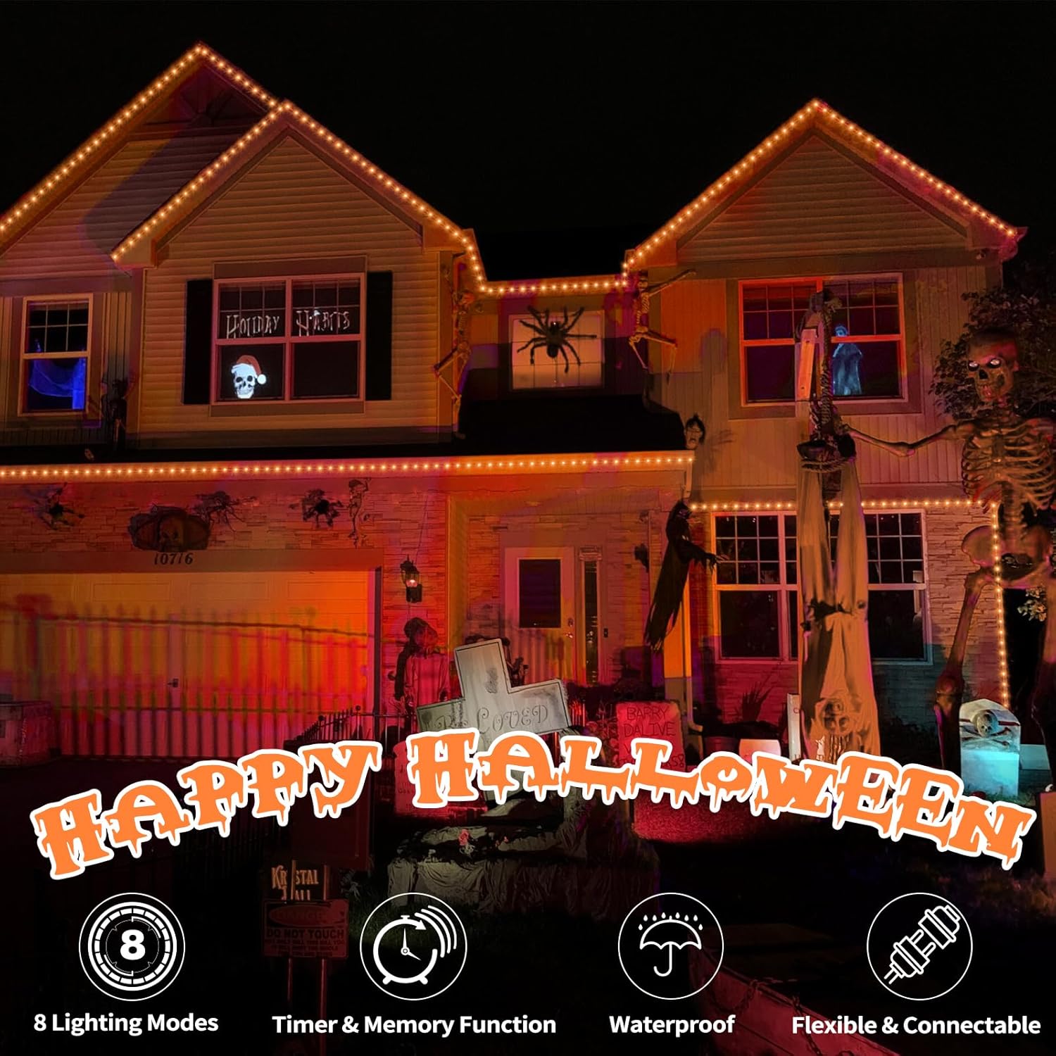 100ft LED Rope Lights Outdoor, 720 LED Connectable and Flexible Tube Lights with 8 Modes, Waterproof Indoor Outdoor LED Rope Lighting for Deck, Garden, Pool, Patio,Party, Holloween Decoration (Orange)